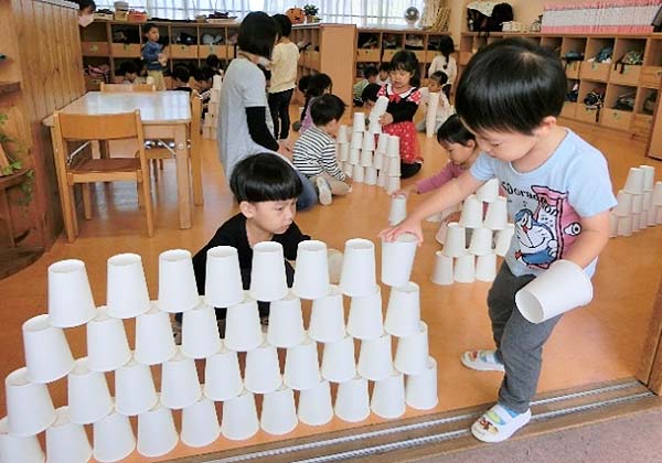 友だちと一緒にお家を作って「(お家の中から)デラレナイヨー」と喜んでいました。