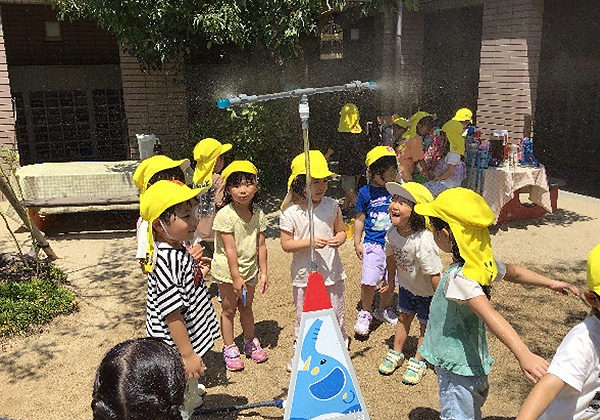 大きなシャボン玉ができると、みんなで手を伸ばして喜んでいました!