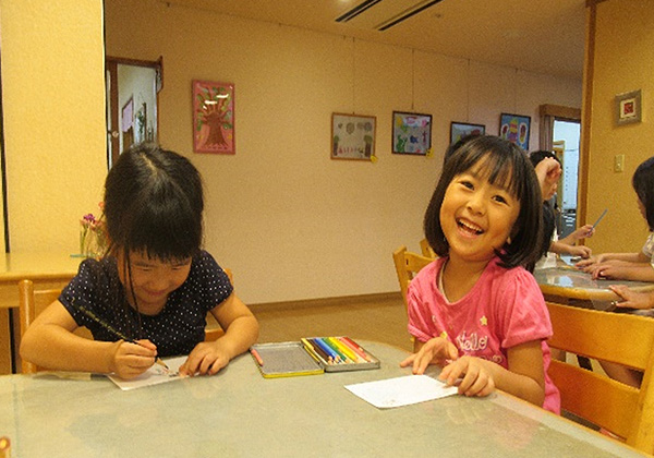 “じいじ、ばあば だいすき♡”と、気持ちを込めて丁寧にハガキを書いていました。